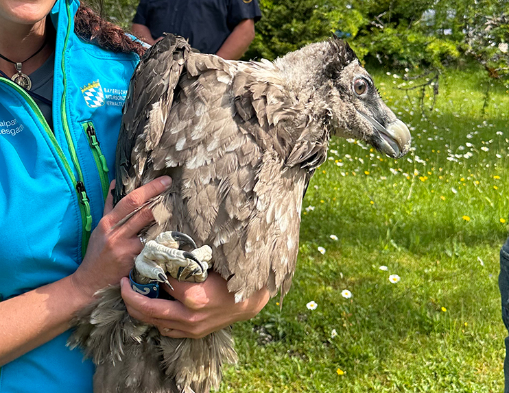 Am 10. Juni 2021 haben wir die ersten beiden jungen Bartgeier namens Bavaria und Wally in einer Felsnische im Nationalpark Berchtesgaden ausgewildert. 2022 folgten Dagmar und Recka, 2023 Sisi und Nepomuk, 2024 erstmals zwei Männchen: Wiggerl und Vinzenz und 2025 Generl und Luisa.